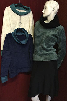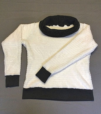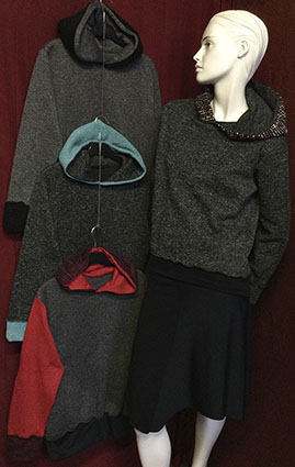 Jersey entallado (no ajustado), hasta la altura del culo. Cuello con muchas opciones, incluso capucha.