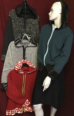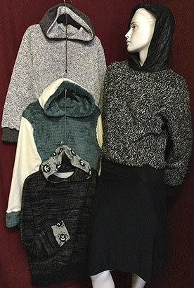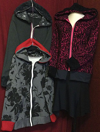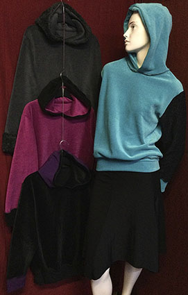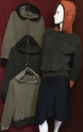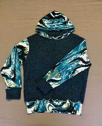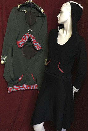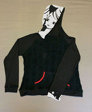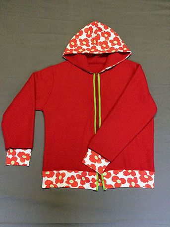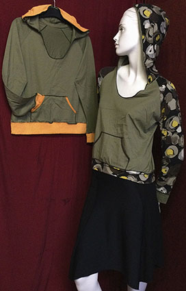 Amplia, mismo patrón que la sudadera, bajo la cadera, sin botones. Con capucha 2Eur mas.